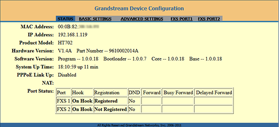 NOTA: se recomienda descargar y actualizar a la ultima version del firmware, desde: http://www.grandstream.com/support/firmware (Descargue y descomprima el zip del firmware .bin que corresponda al modelo de su equipo; en su equipo vaya a «Advanced settings» upload de firmware)